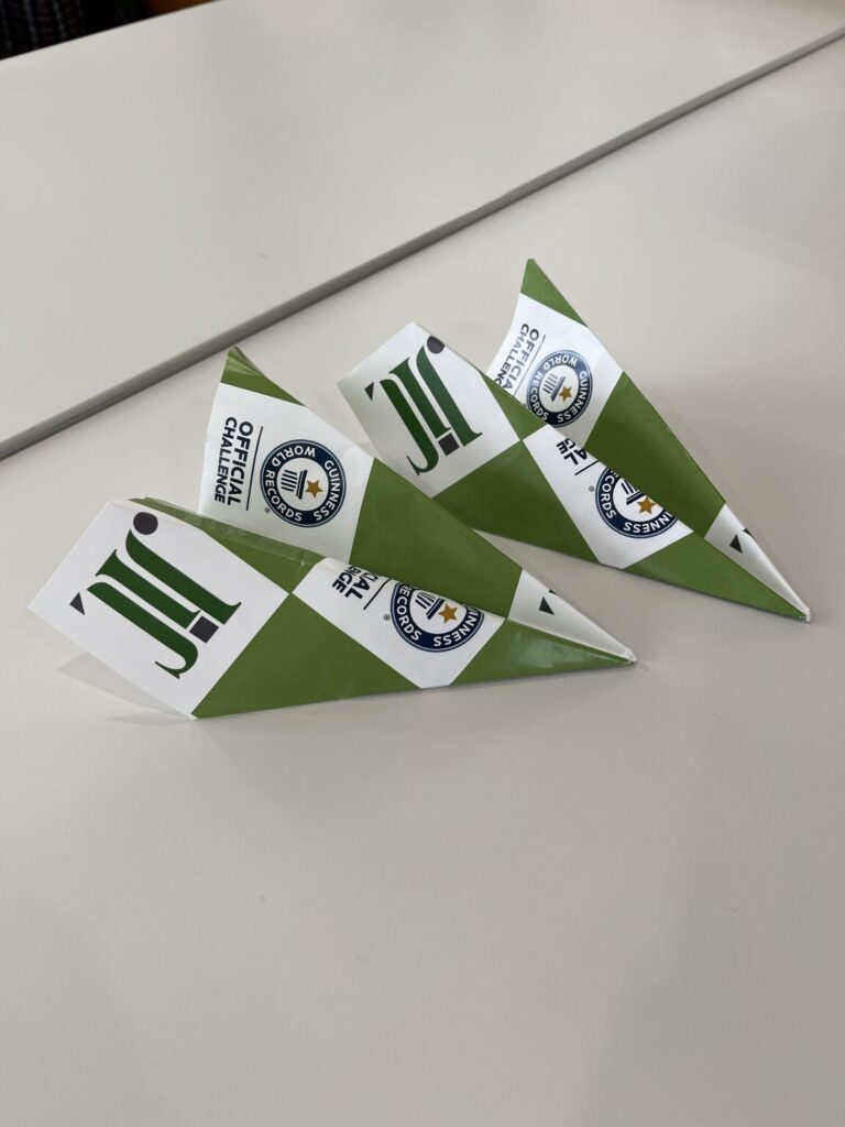 飛んできた紙飛行機をキャッチして、次の人へ飛ばす動画に参加しました。ギネス記録に届きますように!